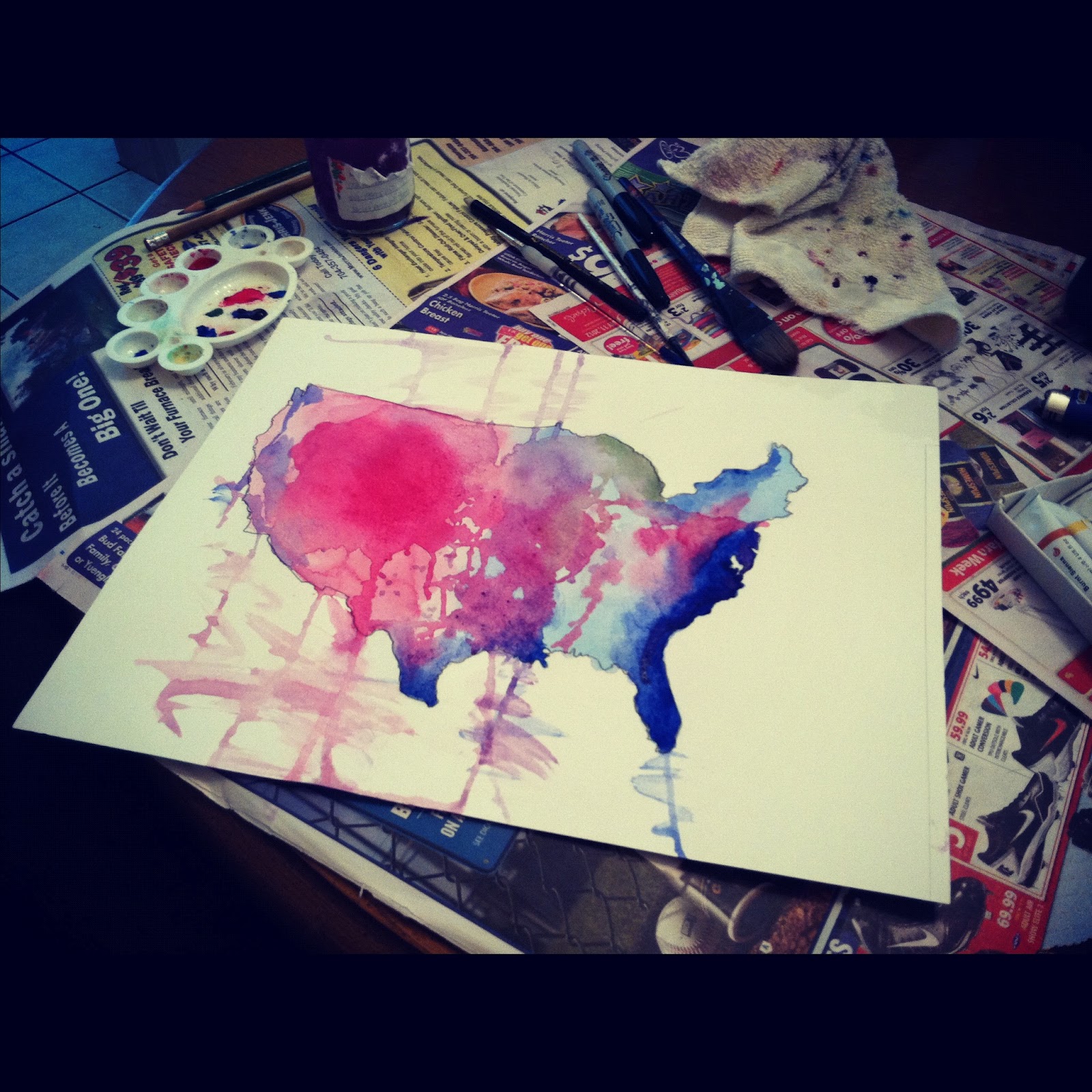 For the past few weeks I've taken a step back and looked into what I am best at, and that is painting and drawing. Recently I started to experiment with watercolors, and I have not been more excited in ages! I have had several things as subject matter that interest me, but admittedly the most fun I've had is with my experimental abstract american painting!